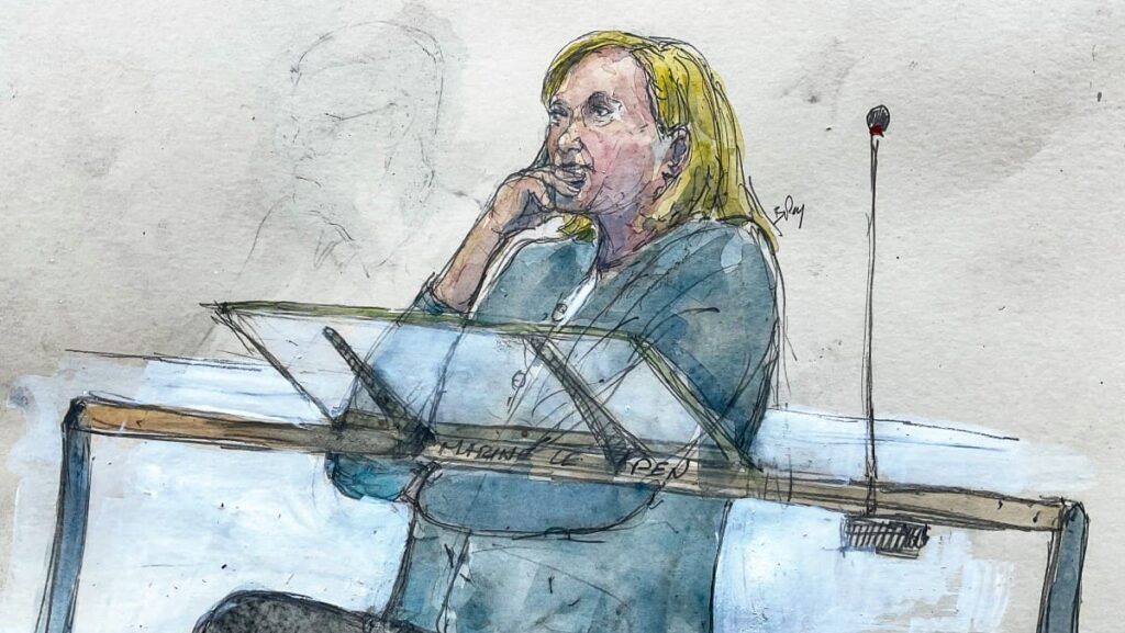 Court sketch depicting Marine Le Pen at the Tribunal de Paris courthouse in Paris, on March 31, 2025.