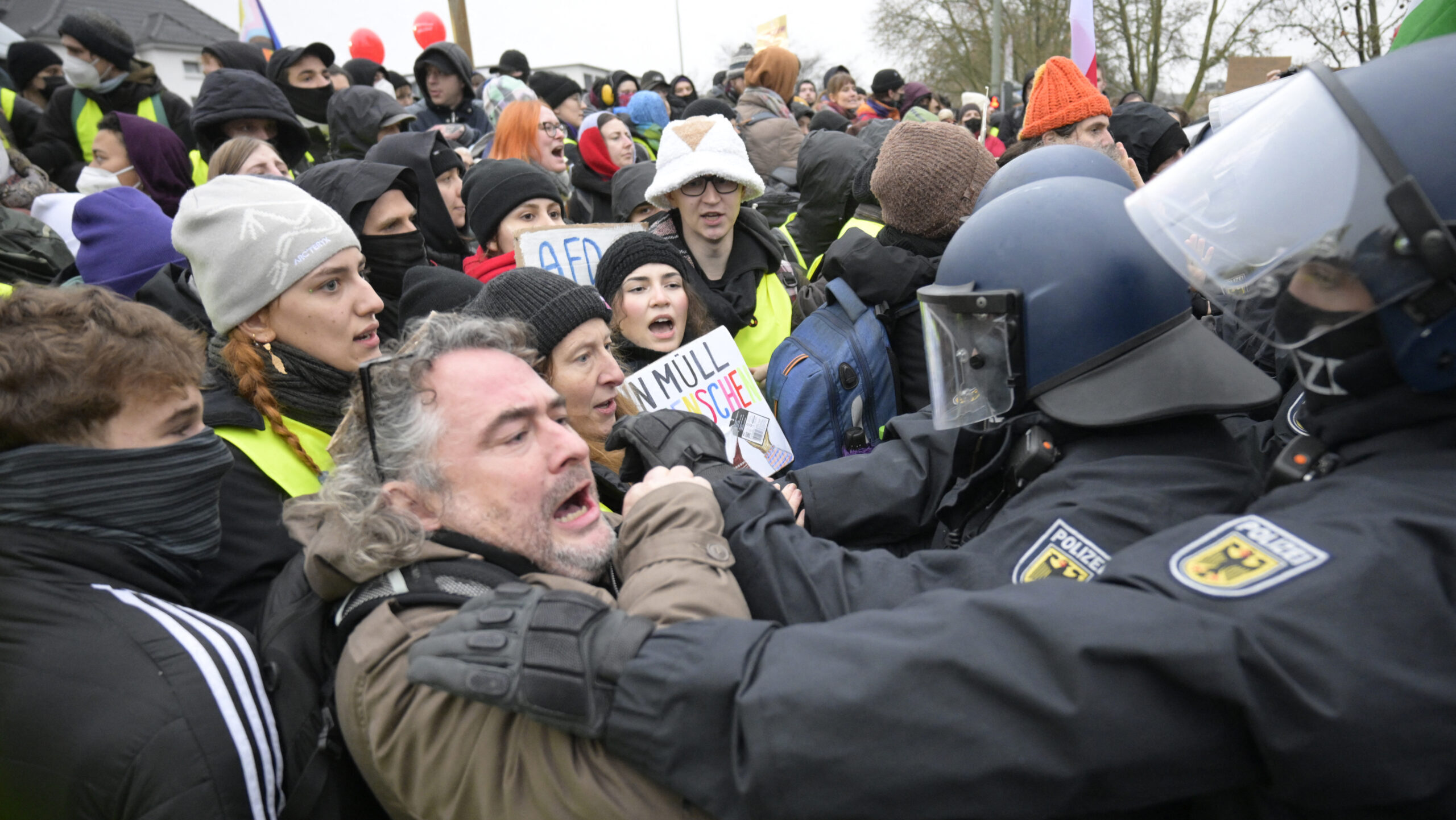 Tens of thousands of protesters swarmed Giessen, blocking roads, clashing with police and delaying the AfD’s new youth wing meeting for hours.