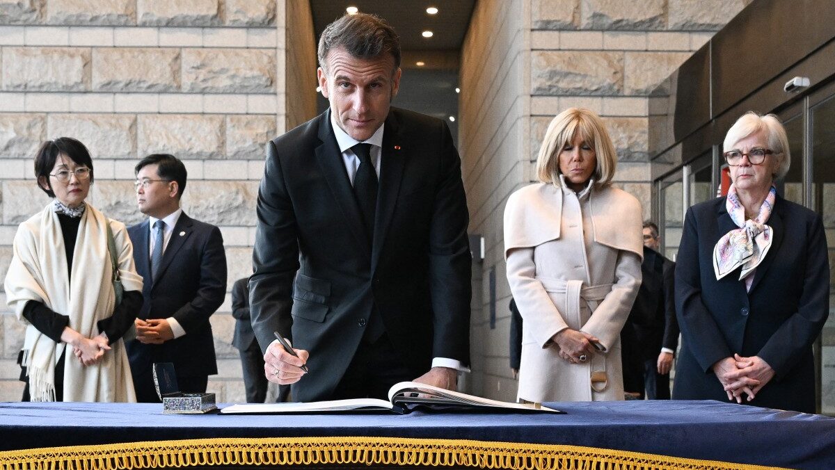 Macron criticized the shifting U.S. stance on the Iran conflict, warning that any military action could expose shipping to Iranian coastal threats and ballistic missile attacks.